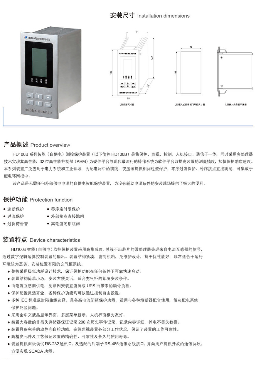 HD100B系列智能(自供电)测控保护装置