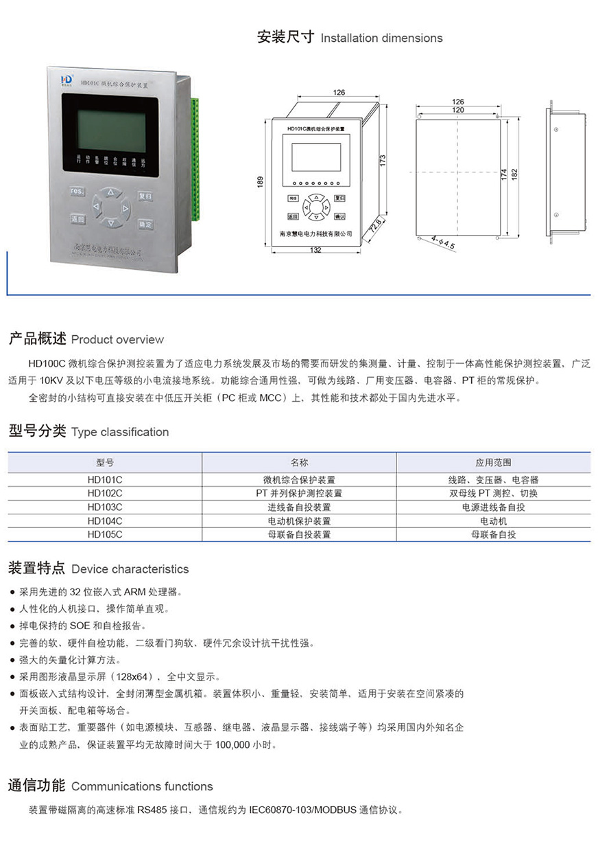 HD100C系列微机综合保护测控装置